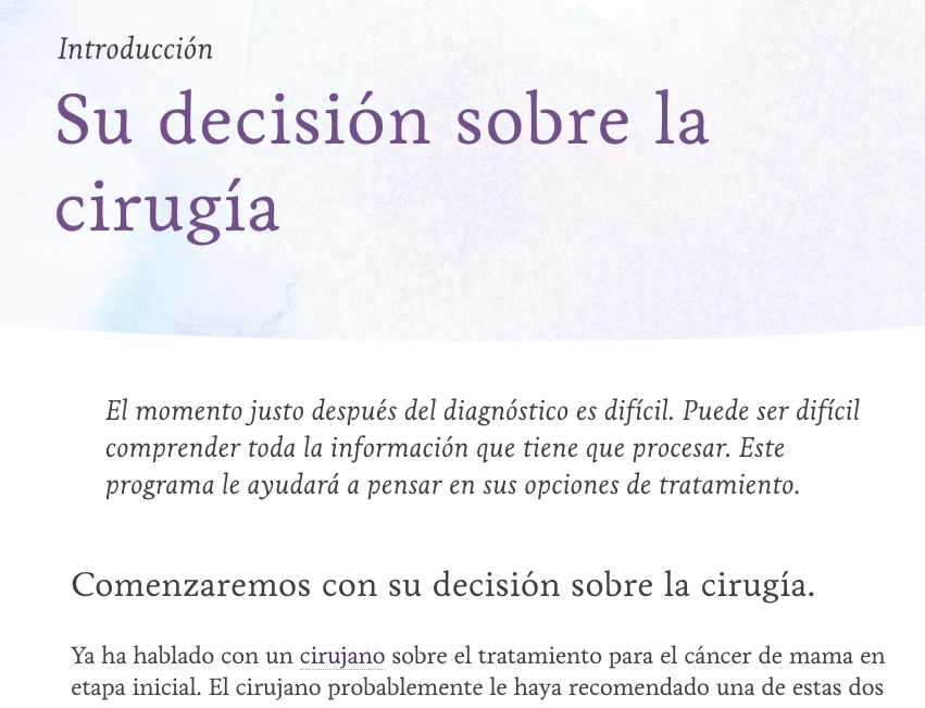 The patient-facing iCanDecide educational site was also offered in Spanish.