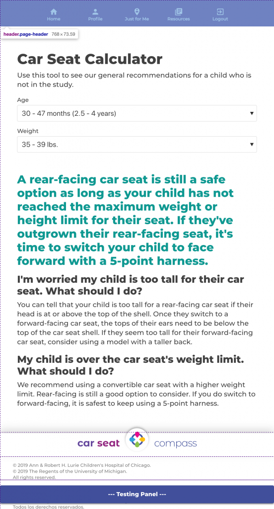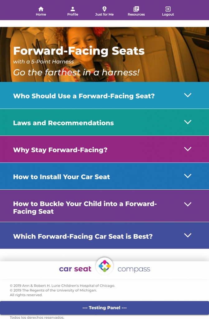CHCR also created the participant-facing Car Seat Compass website. This website included: