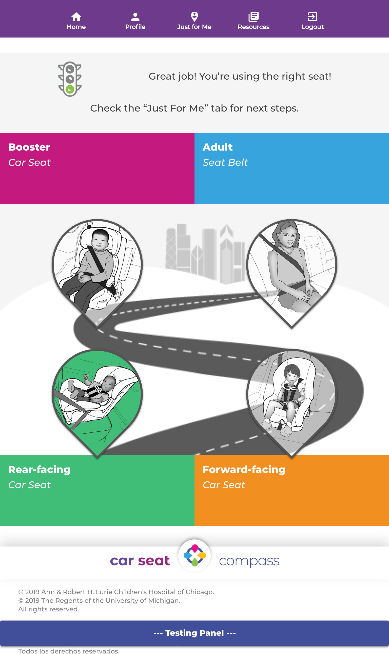 - Personalized summary and feedback based on survey data about child’s car seat